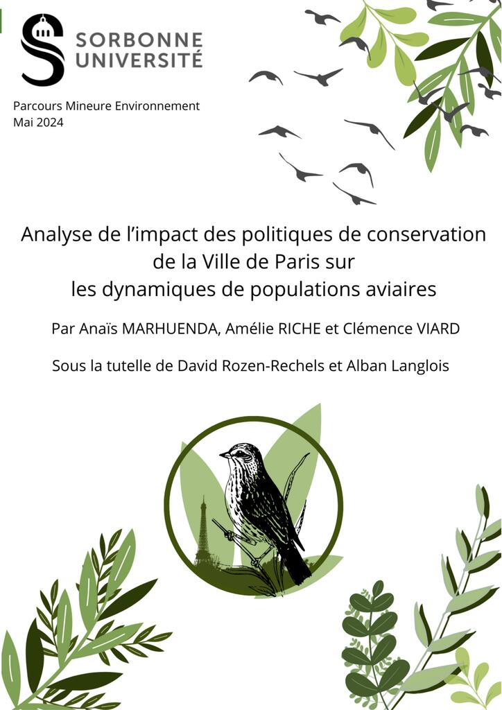 Nos élèves et nos enseignants, dans le cadre des partenariats initiés par le B.D.E, ont contribué à une "recherche-action" pour vérifier les résultats des différentes politiques de la Ville de Paris (Plan de Biodiversité de Paris (P.B.P) 2018-2024) et leur impact du PBP 2018-2024 sur les populations aviaires de la Ville de Paris. C'est dans ce cadre qu'ils ont fait circuler un questionnaire à destination des jardinier.ères auprès de leurs élèves.